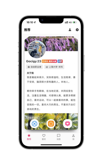 每日推荐大厂青年、名校毕业生、斜杠青年、医生教师公务员,推荐助你找打心动的男生/女生。